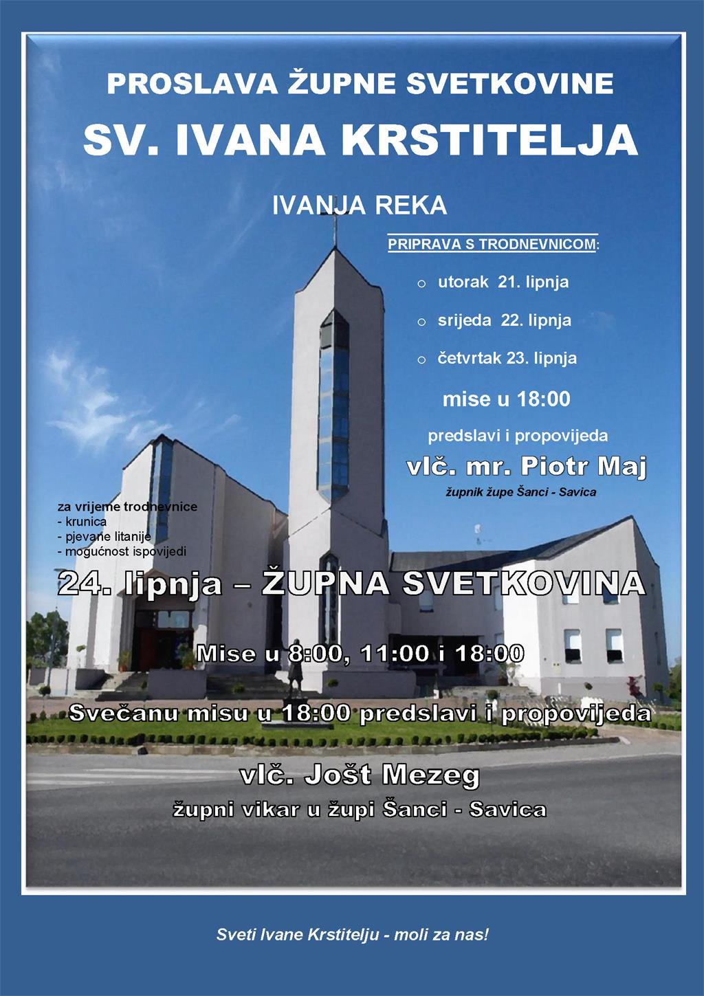 Proslava župne svetkovine u Župi sv. Ivana Krstitelja - Ivanja Reka