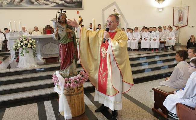 Središnje misno slavlje, kojem je prethodila svečana procesija kroz naselje s kipom Dobrog pastira, predvodio je mons. Antun Sente, ml., rektor Nacionalnog svetišta svetog Josipa u Karlovcu uz koncelebraciju dr. Josipa Beljana te župnika vlč. Zlatka Pavetića. U svojoj homiliji mons. Sente okupljene prvopričesnike, djecu te ostale vjernike potaknuo je na promišljane o psalmu dvadeset i trećem u kojem se Isus prikazuje kao Dobri pastir. Naglasio je važnost prepoznavanje pravih i kvalitetnih ovozemaljskih pastira koji uzor mogu pronaći u Isus.