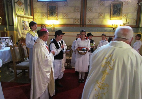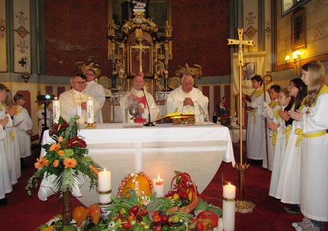 "Sva tri čitanja, pretočena u jedno, naglašavaju prednost duhovnih vrednota pred nestalnim materijalnim vrijednostima te ističu snagu Božje riječi koja mijenja naš život", rekao je biskup Pozaić u svojoj homiliji. Biskup je pozvao vjernike da u ovoj Godini vjere, koju smo započeli prošli tjedan, revnije razmišljaju, pozornije i pobožnije mole Vjerovanje i svetu krunicu, obnavljaju dubinu i žar te djelotvornost i revnost svoje vjere. "Na današnju nedjelju želimo izraziti svoju zahvalnost Bogu, koji je Stvoritelj i Ljubitelj života, za sve lijepe, bogate i dobre plodove s ravnica i bregova, iz rijeka i mora ove naše Lijepe domovine Hrvatske. Tek kad se udruže ljudske ruke, um i srce, i kad se pridruži Božji blagoslov, ubiremo obilje blagoslova za smiren i siguran život te rad, napredak i boljitak pojedinca, obitelji, i nacije", naglasio je biskup Pozaić. Svoju je homiliju završio potičući vjernike da žive zahvalno i velikodušno, uvijek imajući na umu da ljubimo Boga i svoje bližnje. Budući da je to bila i misa zahvalnica za jesenske plodove, na oltar su prineseni plodovi zemlje i rada ljudskih ruku koje su prinosili ovogodišnji krizmanici. Poslije svete pričesti uslijedila je procesija oko crkve s novim kipom Kraljice Krunice kojeg su darovali župljani Zvonko i Barica Jelenčić kao zahvalu za primljene milosti, a ovom zgodom u procesiji su kip nosili članovi DVD-a Zabok. Po završetku misnog slavlja, župnik je zahvalio svima koji su doprinijeli ovoj proslavi, a medicinsko je osoblje, onima koji su željeli, besplatno provjerili krvni tlak i vrijednosti šećera u krvi. Misno slavlje pjevanjem je animirao župni pučki zbor.
