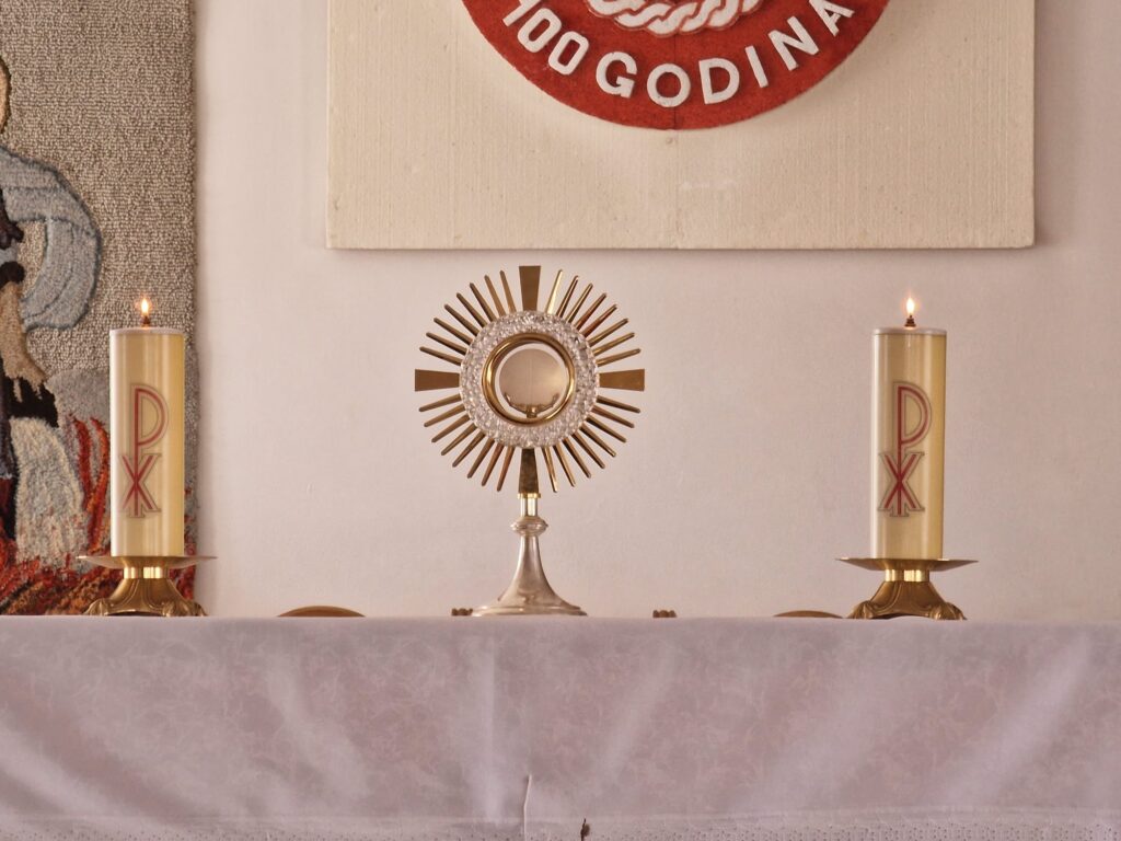 "Danas se naša župa u ime čitave Nadbiskupije klanja se pred Presvetim Oltarskim Sakramentom moleći za sve naše potrebe, osobito za obnovu naše župne crkve i radnike, zatim za obnovu duha naše Domovine, za naše obitelji, za bolesnike i patnike, za progonjene i usamljene, za roditelje i djecu, za stare i one koji su na kraju svog životnog puta", istaknuo je na početku misnoga slavlja župnik vlč. Branko Risek.