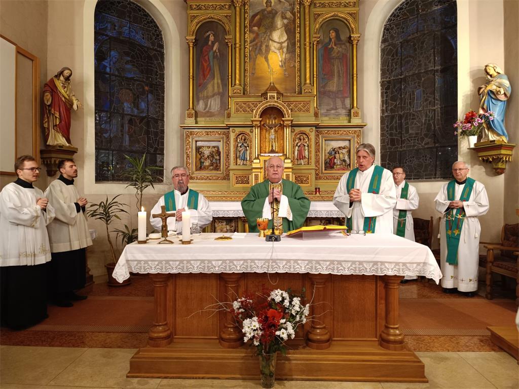 Proslava Dana Društva počela je euharistijskim slavljem u crkvi sv. Martina koje je predvodio zagrebački pomoćni biskup mons. Vlado Razum i dosadašnji duhovni voditelj Društva, uz koncelebraciju nekoliko svećenika, profesora KBF-a i članova Društva.