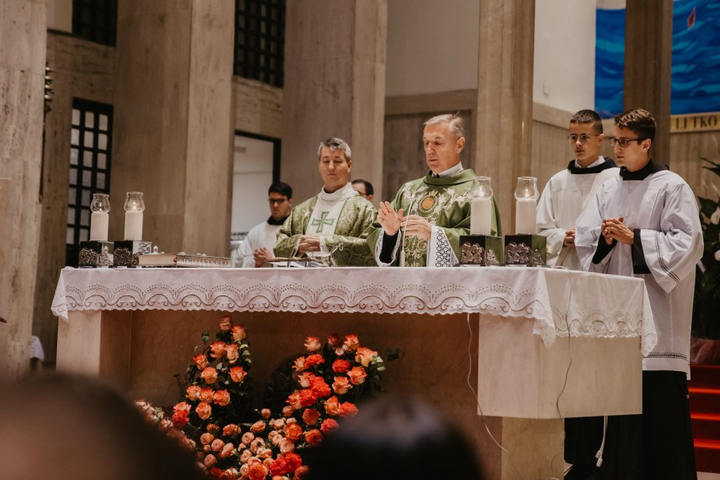 Misu je predvodio fra Miljenko Hontić, ministar Hrvatske provincije sv. Jeronima franjevaca konventualaca pri čijem se samostanu Svetoga Duha mladi okupljaju od osnutka. Misu su suslavili duhovni asistent Frame fra Filip Pušić, župnik Župe sv. Antuna Padovanskoga i rektor bazilike fra Ivan Marija Lotar, nekadašnji član Frame Zagreb–Sveti Duh fra Zvonimir Pervan, nekadašnji duhovni asistenti fra Vladimir Vidović, fra Tomislav Glavnik, fra Filip Musa i fra Matija Marijić.