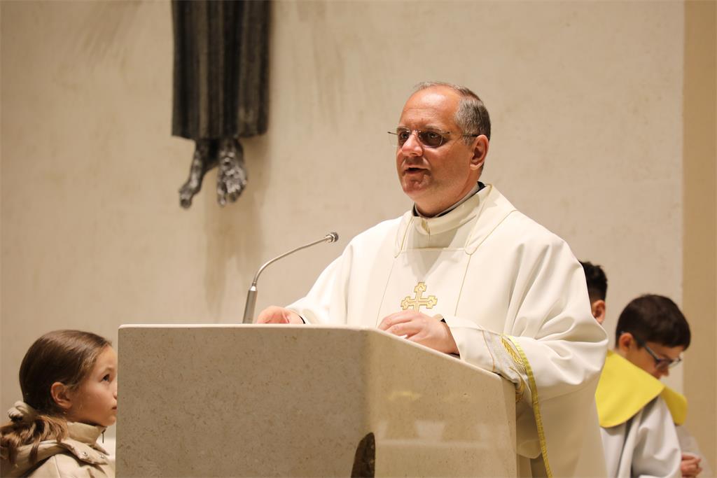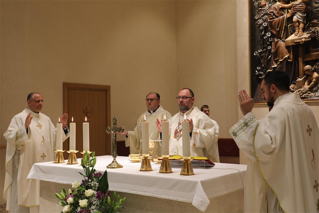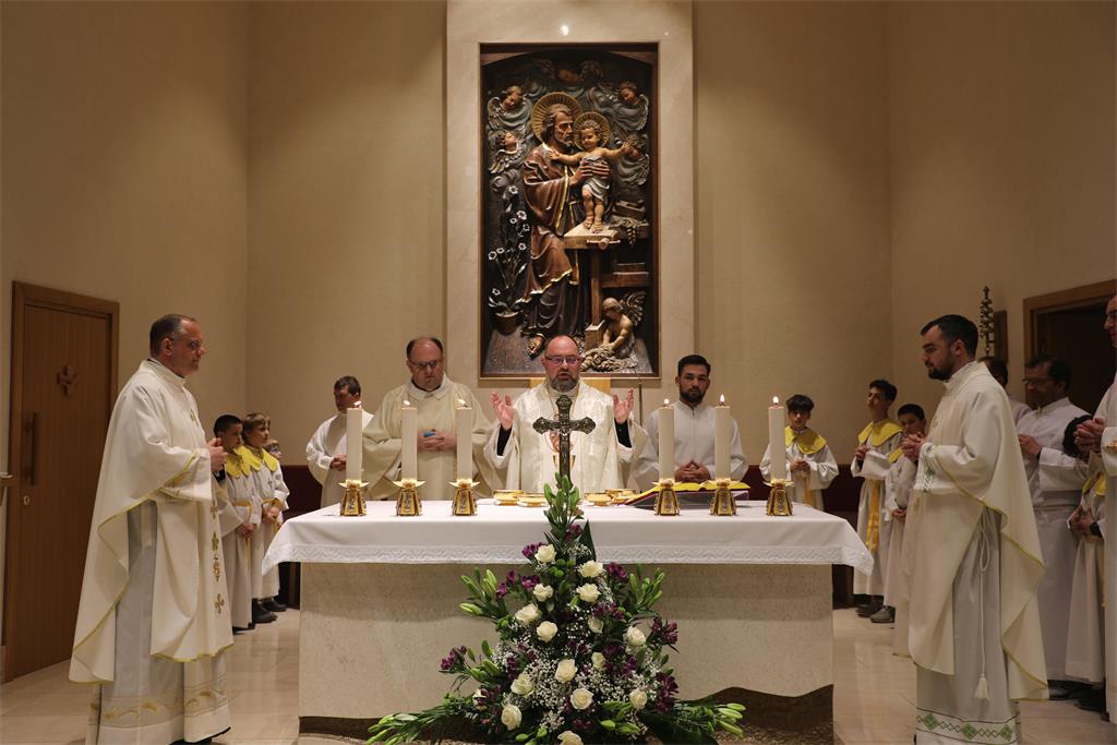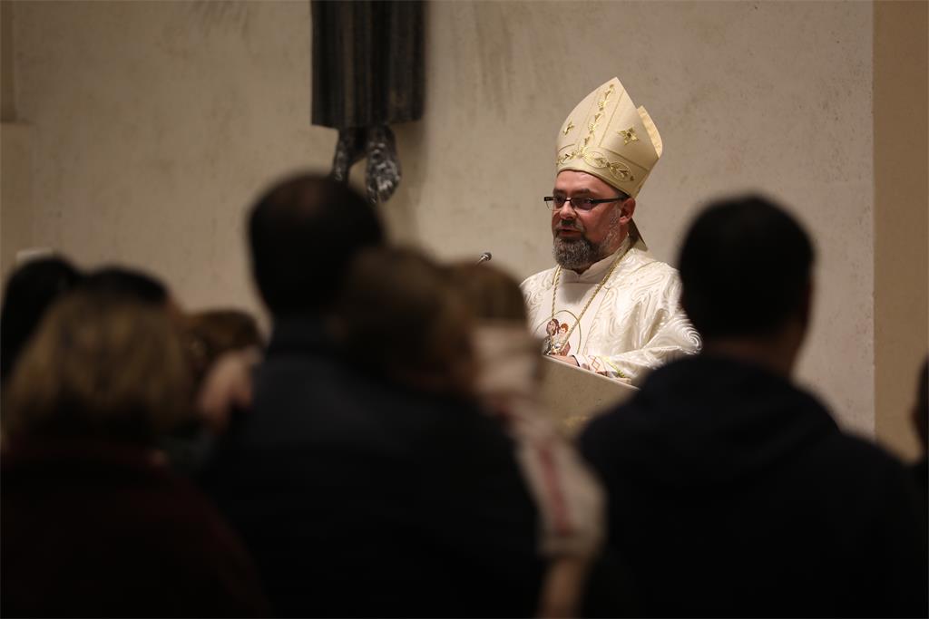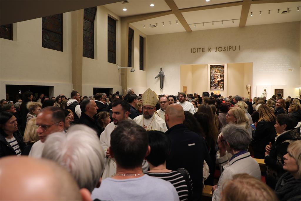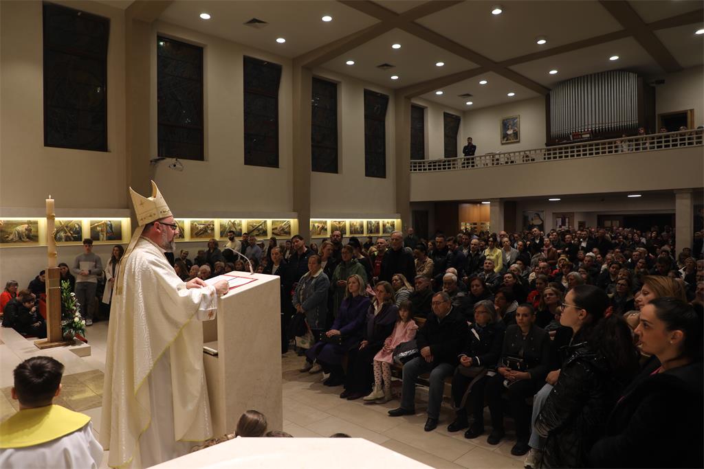 Na početku homilije vladika Stipić pozdravio je sve okupljene župljane, na čelu sa župnikom, hodočasnike, a osobito članove Neokatekumenskog puta s kojima je povezan još od ranijih svećeničkih dana. Čestitao je svim vjernicima župnu svetkovinu svetoga Josipa ističući tog tihog čuvara Svete Obitelji u kojemu se ujedinjuju zapadna - latinska Crkva i istočna - bizantska.