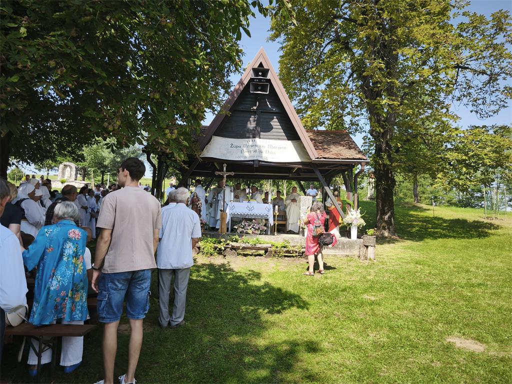 Jutarnju svetu misu na hrvatskom jeziku predvodio je vlč. Ivan Iviček, mladomisnik i župni vikar u župi BDM Snježne, Karlovac - Dubovac te u Hrvatskom nacionalnom svetištu sv. Josipa u Karlovcu. U homiliji je potaknuo vjernike na pobožnost i pouzdanje u zagovor Blažene Djevice Marije, a na kraju misnog slavlja udijelio je mladomisnički blagoslov.