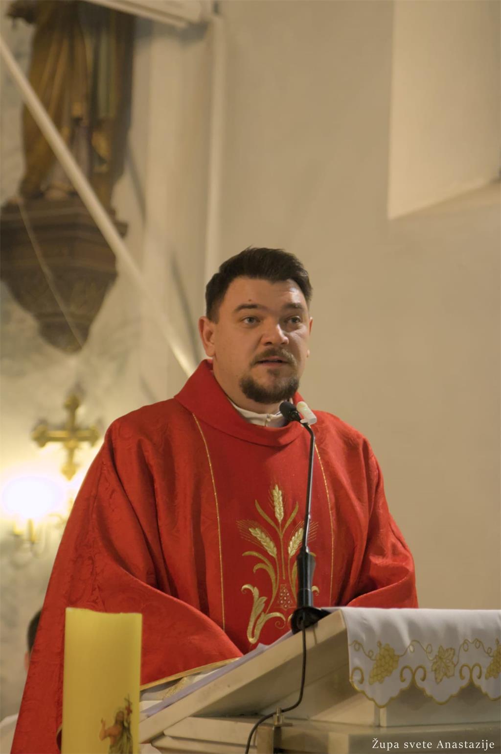 "Želim nam to odmah na početku, da ovo večerašnje slavlje produbi našu istinsku vjeru da nismo okupljeni oko ovog svetačkog kipa, oko običnog komada kruha ili neke davno zapisane riječi, već vjeru da ima smisla. Vjeru da smo živa zajednica živoga Boga. I još važnije, vjeru da ima smisla biti njegov. Jer baš je to poziv današnjeg evanđeoskog ulomka. Baš je to provokacija na osobiti način danas svete mučenice Anastazije, ali i tolikog reda i broja mučenika i svetaca koje častimo i u čiji se zagovor zapravo stavljamo", poručio je vlč. Tušek i pojasnio primjer svete Anastazije.