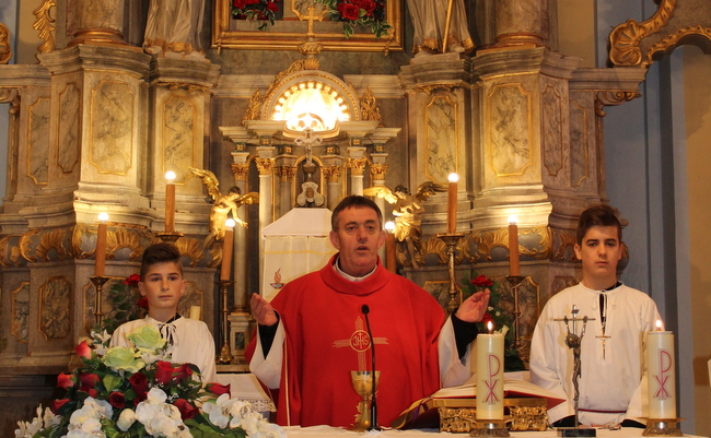 Nedjeljno misno slavlje predvodio je domaći župnik Andrija Markač te se u svojoj propovijedi između ostalog osvrnuo na prvo Isusovo čudo u Kani Galilejskoj kada je vodu pretvorio u vino: „To prvo čudo dogodilo se na svadbi. Uzvanici na svadbi 'zaboravljaju' svoje probleme i brige te uživaju u svadbenim radostima. Tako i slika o kraljevstvu nebeskom kao o svadbi svima nama čini se bliža, prihvatljivija. Kao što su najprostiji ljudi poput pastira bili prvi koji su saznali za betlehemsko čudo, tako i ovdje na svadbi su upravo sluge, priprosti ljudi, prvi svjedoci Isusova čuda.