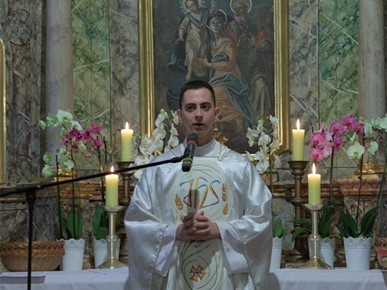 Večernje misno slavlje predvodio je mladomisnik vlč. Kristijan Kolonić, koji je svoj đakonski praktikum vršio u Župi sv. Anastazije mučenice u Samoboru.