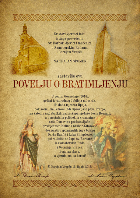 Na kraju misnog slavlja pročitan je tekst povelje o bratimljenju između spomenutih župa.