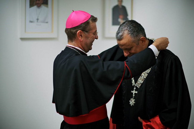„Stavljajući Vam rektorski lanac oko vrata, radim to s ponosom. Ovim činom otvara se nova dionica puta na kojoj Vam želim obilje Božjeg blagoslova“ – istaknuo je biskup Šaško.