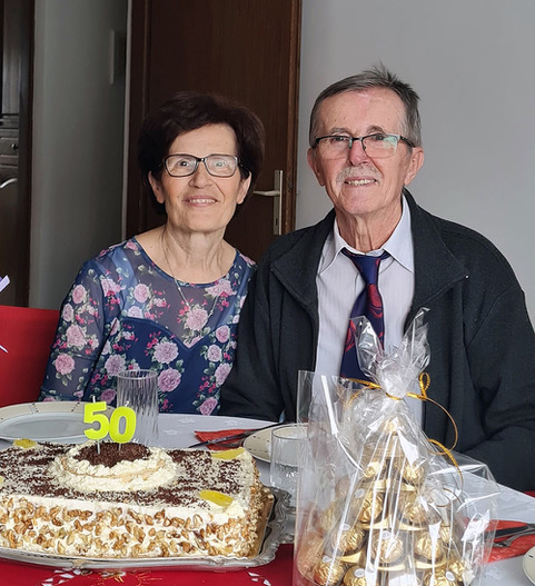 Gđa Ljubica: Rođena sam 20. svibnja 1952. godine u selu Sovići, u Bosni i Hercegovini, kao deseto dijete roditelja Andrije i Matije Prlić. Kako bi nas lakše školovali, roditelji su odlučili da se 1954. godine preselimo u Slavoniju, u selo Velika Kopanica. Tamo sam završila osnovnu školu i provela lijepo, skromno i sretno djetinjstvo. Tamo su se rodili moj najmlađi brat i sestra pa nas je bilo dvanestero djece - 7 braće i 5 sestara. Roditelji su nas učili da nam vjera i molitva budu uvijek na prvom mjestu. Učili su nas da se kao obitelj međusobno poštujemo i pomažemo. Kada bi stariji brat ili sestra završili školu i zaposlili se, uzeli bi k sebi mlađeg i pomogli u daljnjem školovanju. Tako sam i ja nakon završene osnovne škole došla u Zaprešić kod moje starije sestre i šogora. Upisala sam i završila srednju ekonomsku školu, zaposlila se kao službenik u Plivi, a nakon šest godina prešla raditi u jednu banku i ostala preko trideset godina, odnosno sve do umirovljenja. U Zaprešiću sam upoznala supruga Ivana koji je rođeni Zaprešićanin, udala se za njega 1972. godine i evo nas, Bogu hvala, zajedno već 51 godinu. Roditelji smo dviju kćeri, imamo jednu unuku i živimo u vlastitoj kući sa starijom kćeri, zetom i unukom.