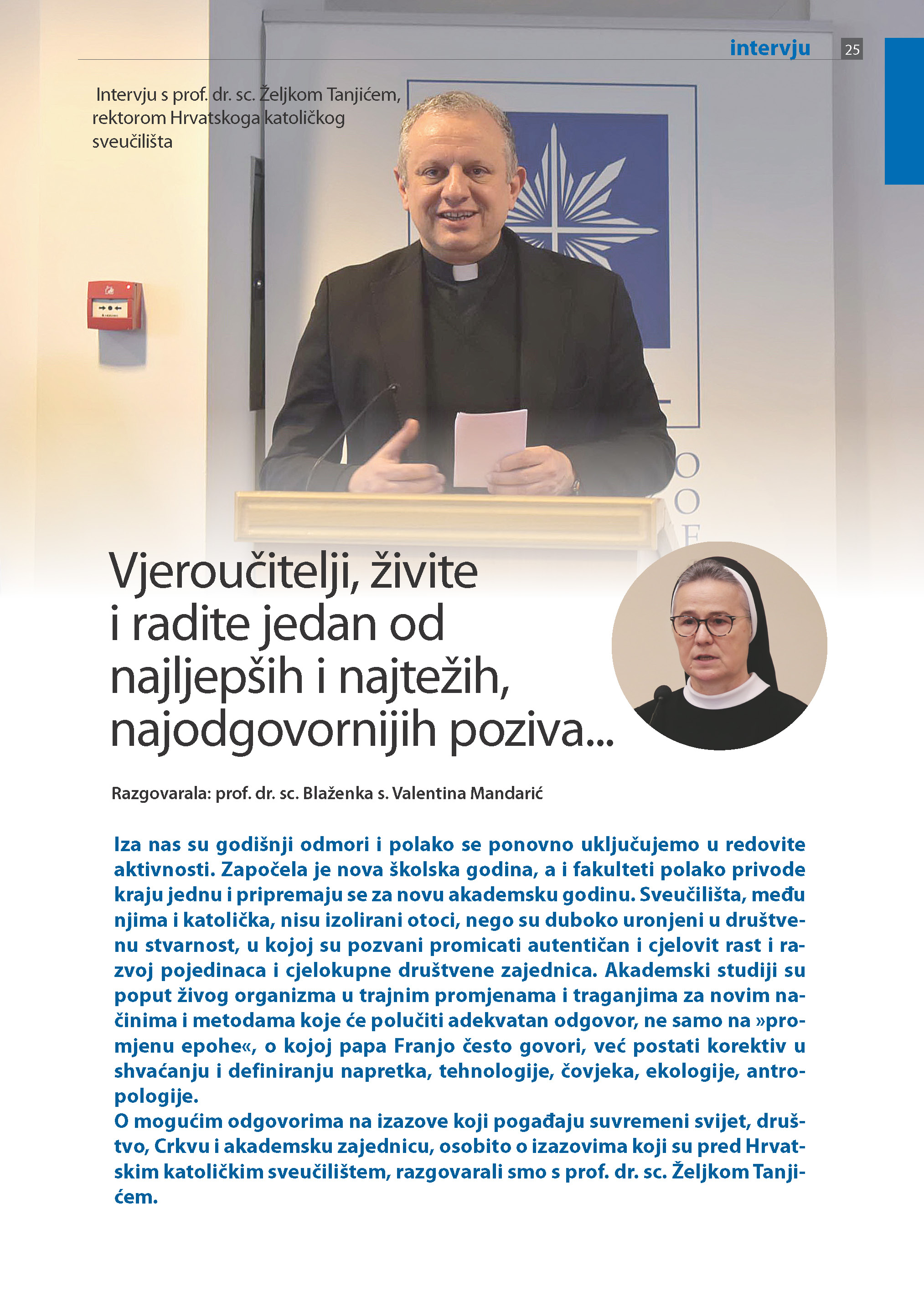 Za treći broj časopisa "Lađa" u 2024. godini s prof. dr. sc. Željkom Tanjićem, rektorom Hrvatskog katoličkog sveučilišta, razgovarala je prof. dr. sc. Blaženka s. Valentina Mandarić.