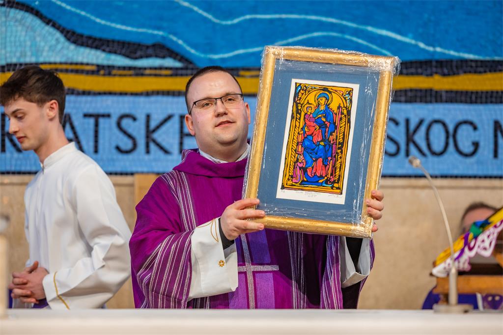 Na završetku slavlja mons. Sente zahvalio je predvoditelju mise na dolasku i predvođenju euharistijskoga slavlja. U znak zahvalnosti uručio mu je sliku "Gospa Benediktinki" (2013.), djelo akademskog slikara Josipa Botterija Dinija, kao poveznicu s prisutnošću benediktinaca na području Požeške biskupije (Rudine - Čečavac).