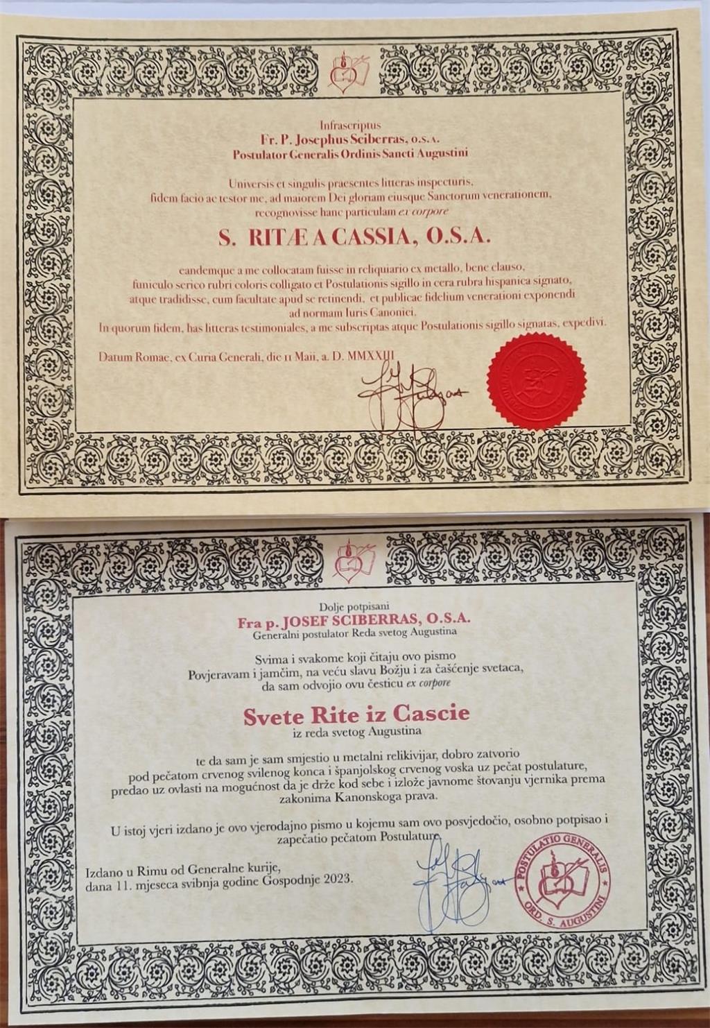 “S pobožnošću svetoj Riti započeli smo svake godine. Ima jedna pobožnost koja se zove 14 četvrtaka svetoj Riti, koju u župi molimo sve do blagdana svete Rite. Ove godine ćemo to možda malo ljepše obilježiti, doduše ne na sam blagdan. Ali ovih dana pohodit će nas fra Josef Sciberras, OSA, generalni postulator Reda svetog Augustina. On će u Župu Svih svetih u četvrtak 11. svibnja donijeti relikvijar s relikvijom sv. Rite i darovati ga župi u trajno vlasništvo. Nakon večernje mise toga dana, koja počinje u 18:30, bit će prilika za pojedinačno iskazivanje štovanja ovoj dragoj svetici.