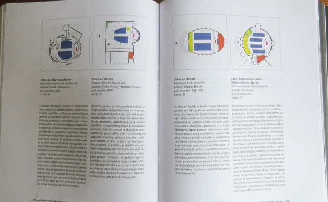 Arhitektonska obilježja liturgijskih građevina postavlja kriterije za promatranje arhitektonskih osobitosti liturgijskih građevina 20. stoljeća te predstavlja izbor primjera koji svojim osobitostima pripadaju dominantnoj arhitektonskoj paradigmi vremena i kao takvi su doprinos hrvatskoj arhitektonskoj baštini.