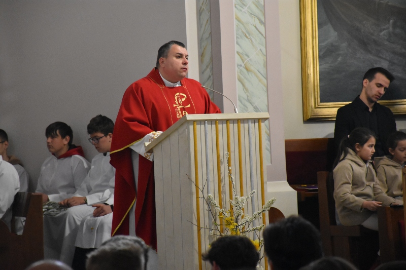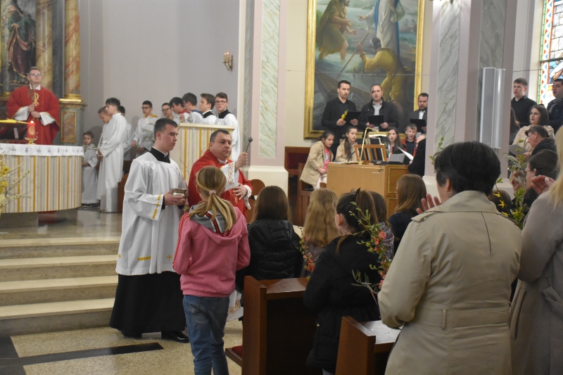 Brojni vjernici okupili su se u župnoj crkvi sv. Jurja gdje ih je pozdravio preč. Pavlaković. „Radujem se što na ovom slavlju, uz šalatske sjemeništarce, sudjeluju brojna djeca i mladi ove župe. Izvršimo spomen Isusova ulaska u Jeruzalem živom vjerom. Neka palmine, maslinove i druge grančice koje ćemo sada blagosloviti budu znak našega nutarnjeg raspoloženja prema Isusu Kristu kojeg pratimo na njegovu putu poniženja i proslave.“