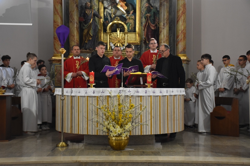 Nakon blagoslova grančica, svečani proglas Muke Gospodnje po Mateju otpjevala su trojica pjevača praćenih župnim mješovitim zborom „Magnificat“ pod ravnanjem Ivice Kontenta, člana opernog zbora HNK-a u Zagrebu.