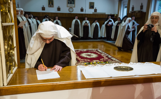 Nakon homilije uslijedio je sam obred zavjetovanja koji uključuje dijalog s kandidatkinjom, litanije svih svetih, čin zavjetovanja i vlastoručni potpis dokumenta položenih zavjeta, svečani blagoslov i posvećenje zavjetovanice, te predaje koprene - znaka posvećenja redovnice okićene cvjetnim vijencem.
