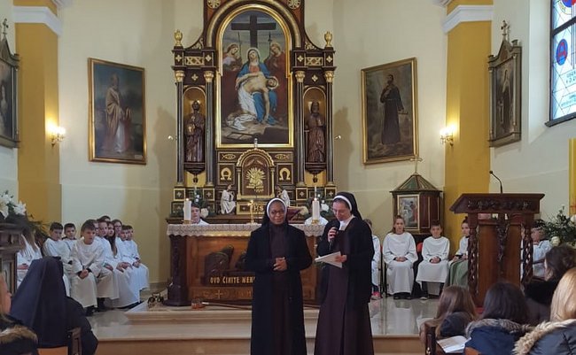 Sestra Dijana kratko je upoznala vjernike sa životom bl. Utemeljiteljice i osnutkom družbe te životom i djelovanjem u domovini, a s. Petra Mirjam i s. Ann Mary živopisno su u obliku intervjua uz pomoć power point prezentacije govorile o životu sestara u Nigeriji. S. Ann Mary naučila je sve nazočne uz pomoć afričkih bubnjeva nigerijsku marijansku pjesmu. Ponudile su vjernicima rukotvorine djece iz doma sv. Josipa, te knjige o utemeljiteljici, a prihod je išao za potrebe misije u Nigeriji.