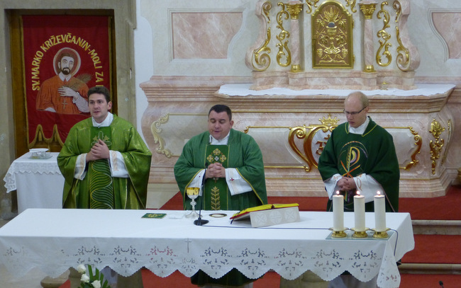 Euharistijsko slavlje predvodio je novi prefekt Goran Bužak, a propovijedao je duhovnik Ivan Grbešić. Vjernicima je rekao kako im je Bog podario mladog svećenika i potaknuo ih da mu budu podrška, ponajprije molitvom. Uz nedjeljna čitanja propovjednik je potaknuo roditelje da djecu odgajaju u svjetlu vjere u uskrsnuće, kako ne bi pokapali njihove uzvišene ideale za žrtvu kroz brojne obitelji ili duhovni poziv.