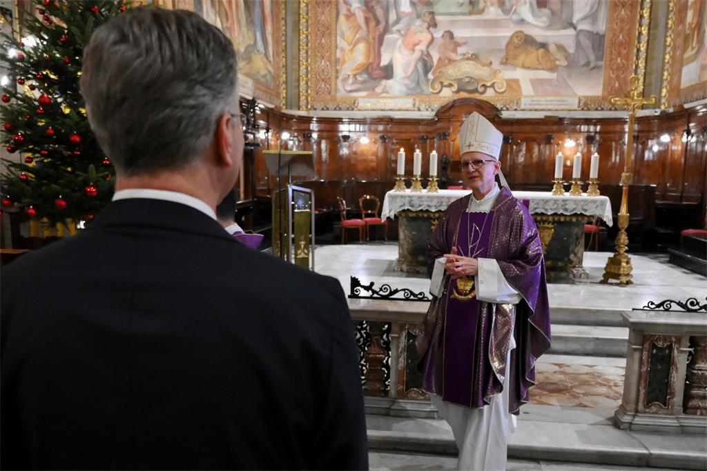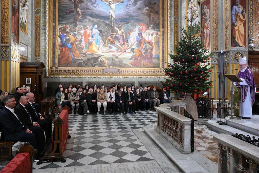 Misa za Domovinu prigodom službenog posjeta Svetoj Stolici predsjednika Vlade Republike Hrvatske Andreja Plenkovića slavljena je u petak 5. prosinca u Hrvatskoj crkvi sv. Jeronima. Misno slavlje predvodio je mons. Petar Rajič, apostolski nuncij u Italiji i San Marinu. Koncelebriralo je tridesetak svećenika koji su na raznim službama ili na studiju u Rimu.