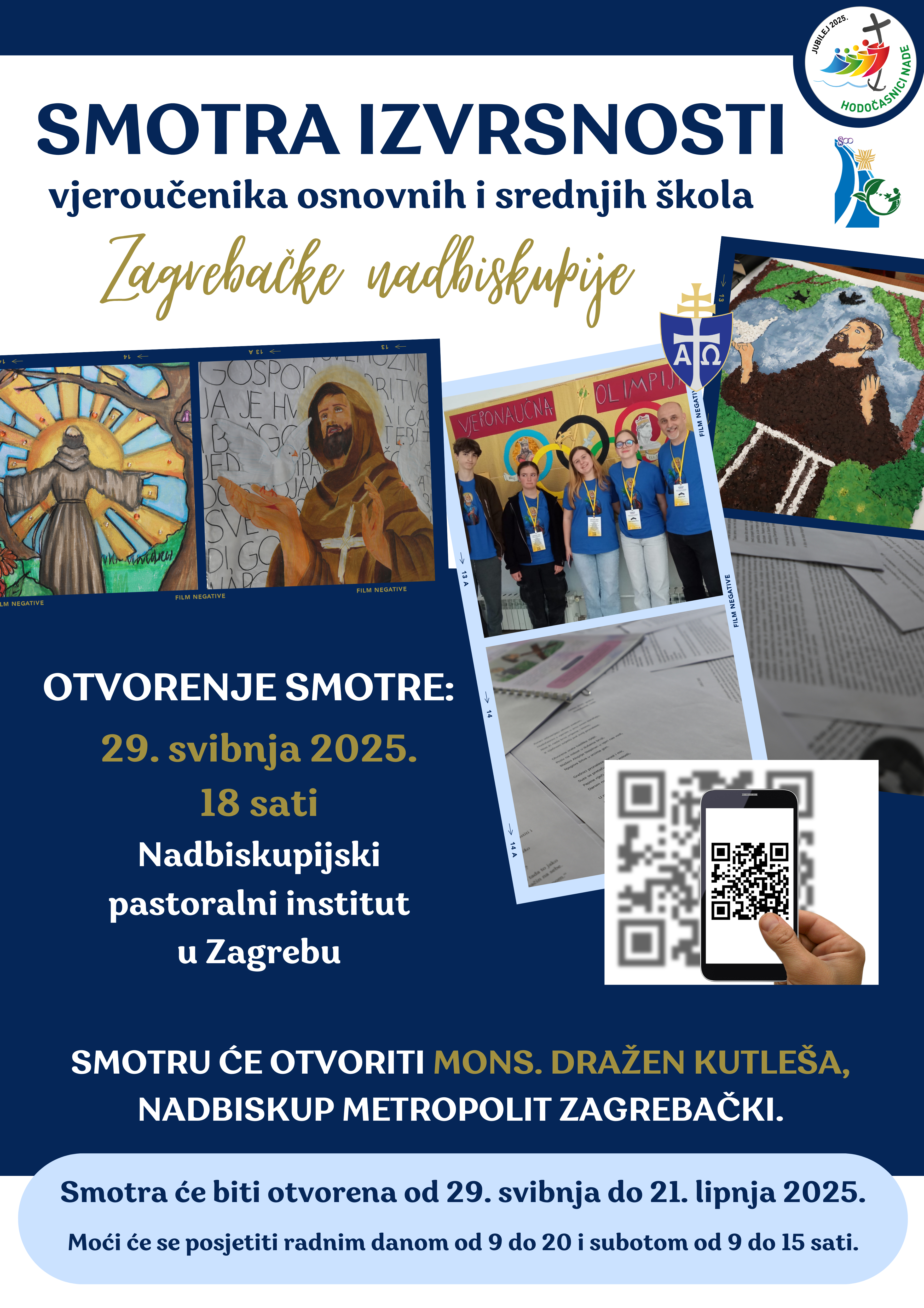 Smotra izvrsnosti vjeroučenika osnovnih i srednjih škola Zagrebačke nadbiskupije u vidu izložbe bit će otvorena