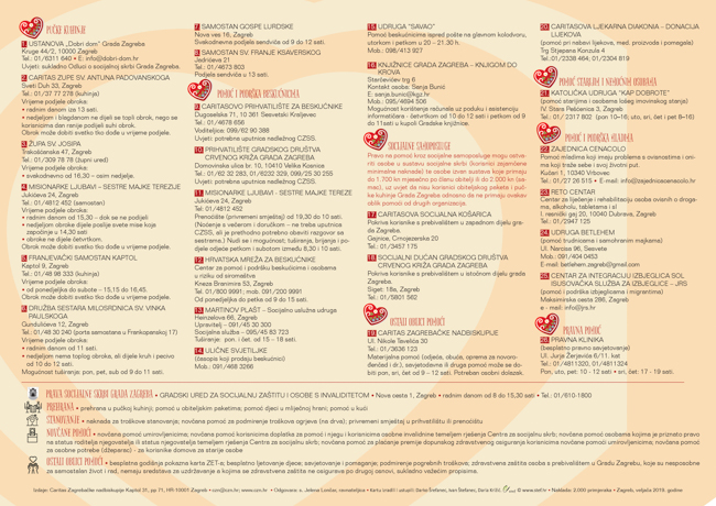 Caritas Zagrebačke nadbiskupije izradio je Socijalno-karitativnu kartu Grada Zagreba kako bi potrebitima i onima koji ih poznaju pružio informacije o pružateljima tih usluga, njihovim kontaktima, oblicima pomoći i vremenu u kojem se pružaju.