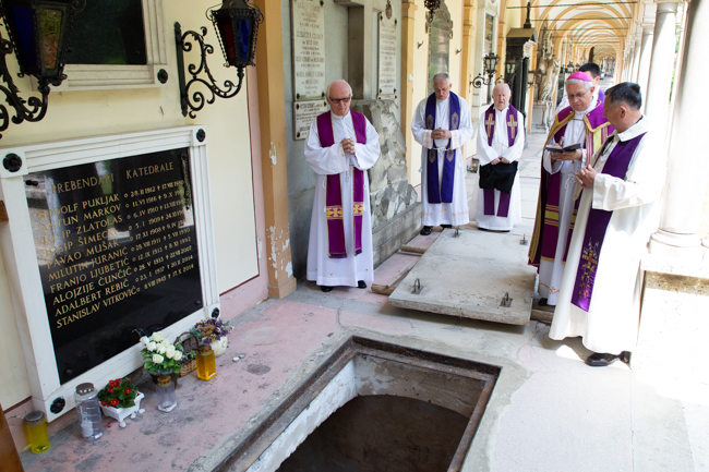 Na kraju sprovodne mise oproštajni govor uputio je preč. Juraj Jerneić, a tijelo preč. Osrečkog položeno je u grobnicu Prebendara u mirogojskim arkadama.