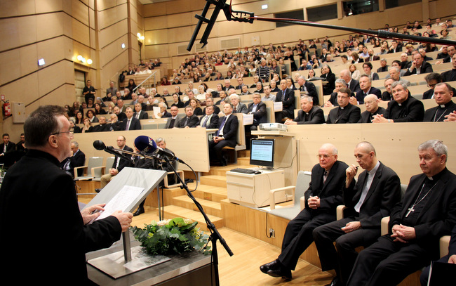 Na početku susreta koji se održao u Kongresnoj dvorani Ekonomskog fakulteta, zagrebački nadbiskup i veliki kancelar KBF-a kardinal Josip Bozanić pozdravio je okupljene, ističući da su Katolička Crkva u Hrvatskoj, ali i hrvatski narod obilježeni životom i smrću blaženoga Alojzija Stepinca.