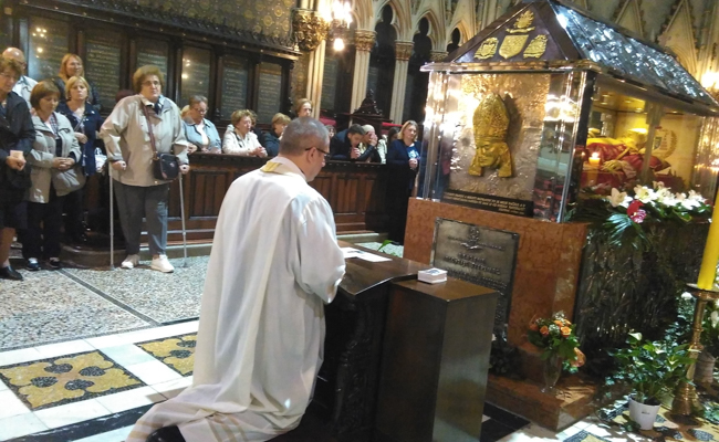 Trećega dana trodnevnice uoči svetkovine Stepinčeva župljani Župe blaženoga Alojzija Stepinca s Trnjanske Savice pod vodstvom župnika Antuna Vukmanića hodočastili su u ponedjeljak, 2. listopada 2017., u katedralu na grob blaženoga Alojzija Stepinca.