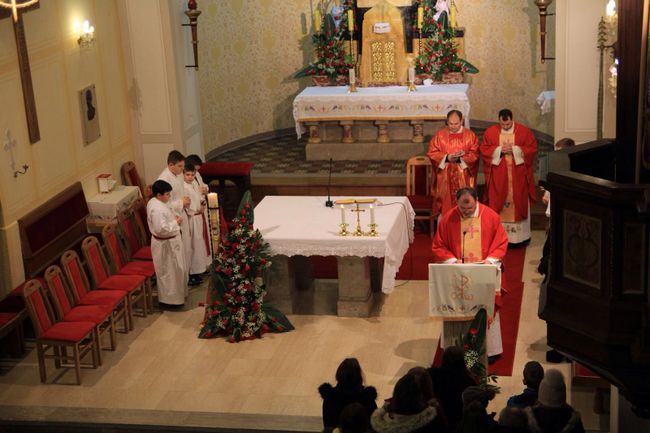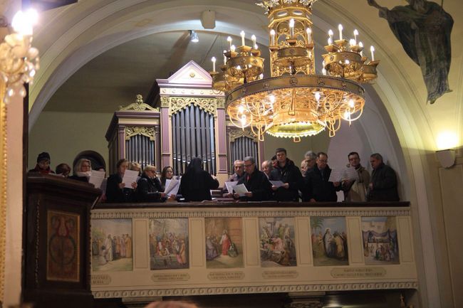 Svojim lijepim glasovima liturgiju je obogatio zbor „Marijan Mihelčić“ iz istoimene župe sv. Obitelji pod ravnanjem s. Lucijane Bobaš. Tu župu, jednu od mnogih, osnovao je mučenik, blaženik Alojzije Stepinac. Dana 23. kolovoza 1936. blagoslovljen je kamen temeljac za novu crkvu i odmah se pristupilo gradnji. Crkva je stavljena pod krov pred Božić 1936. godine. Da su se radovi mogli tako brzo i bez zastoja odvijati, najzaslužniji je bio g. Antun Res, tvorničar, jer je dao izraditi sve nacrte i dao materijal, koji se mogao naći u njegovoj tvornici katrana, koja se nalazila u blizini. Župa je službeno utemeljena dekretom nadbiskupa dr. Antuna Bauera, 20. travnja 1937. g.