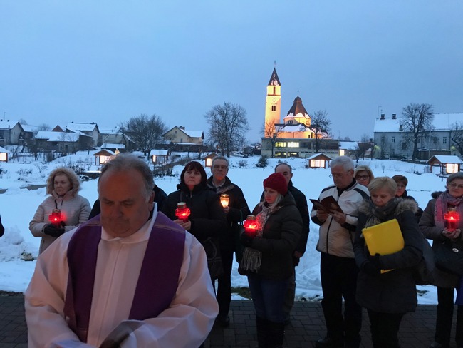 Okupljeni vjernici prije svečane svete mise imali su pobožnost križnog puta, koji paralelno s evanđeljem opisuje Blaženikovo mučeništvo, a kojeg je predvodio vlč. Dragutin Goričanec, povjerenik za pastoral osoba s posebnim potrebama, duhovnik u zagrebačkom Caritasu, župnik u Župi Uzvišenja Sv. Križa u Završju te predsjednik udruge Job.