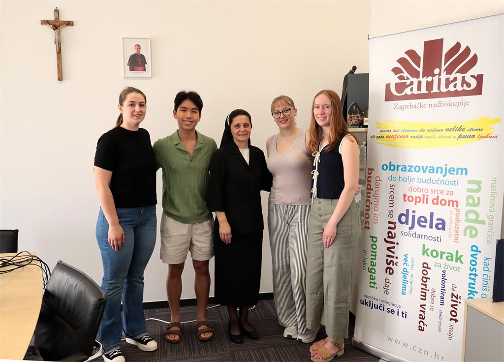 Zahvaljujući posredovanju prof. dr. sc. Jasne Ćurković Nimac, prorektorice za međunarodnu suradnju Hrvatskoga katoličkoga sveučilišta i Nanovic institutu za europske studije Sveučilišta Notre Dame iz SAD-a, troje studenata: Grace, Aaliyah i Don provest će dva mjeseca volontirajući u domovima i službama zagrebačkog Caritasa.