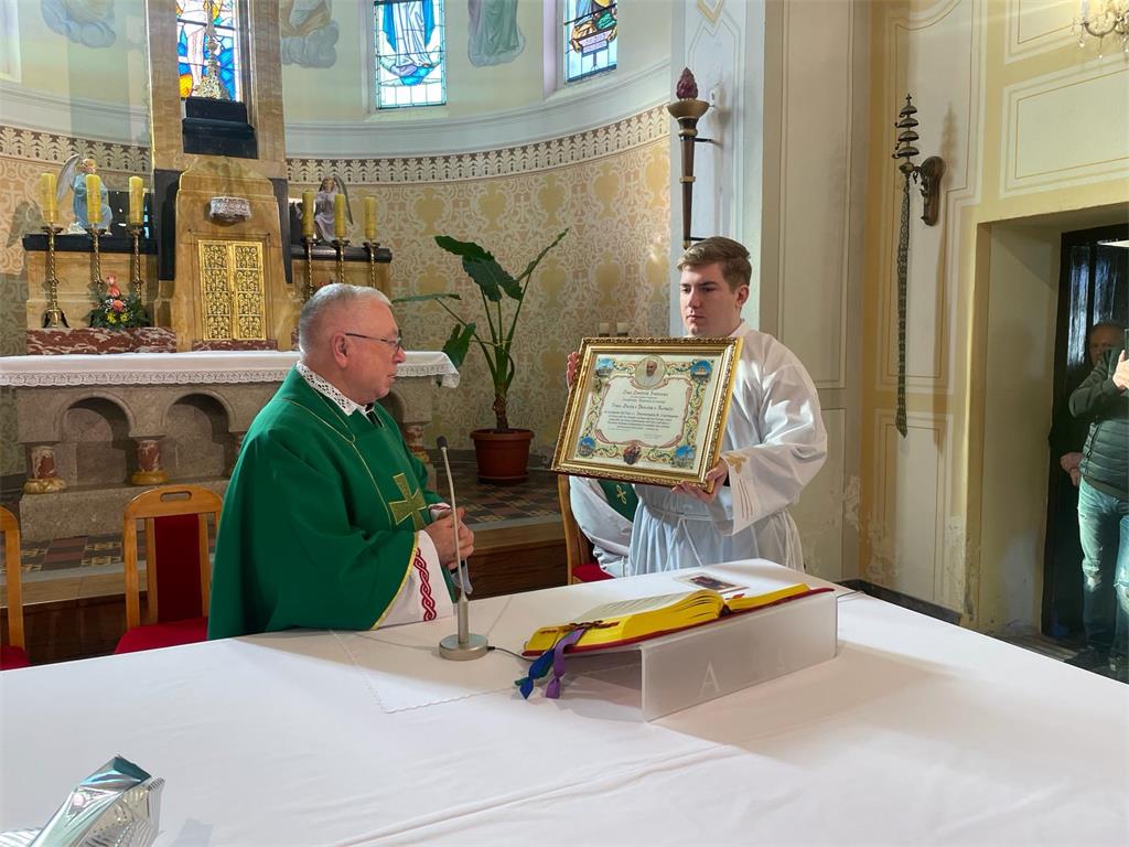 Na kraju euharistijskog slavlja, vlč. Vučak darovao je supružnicima papinski blagoslov, a mons. Batelja darovao im je i blagoslovio kip Gospe Fatimske.