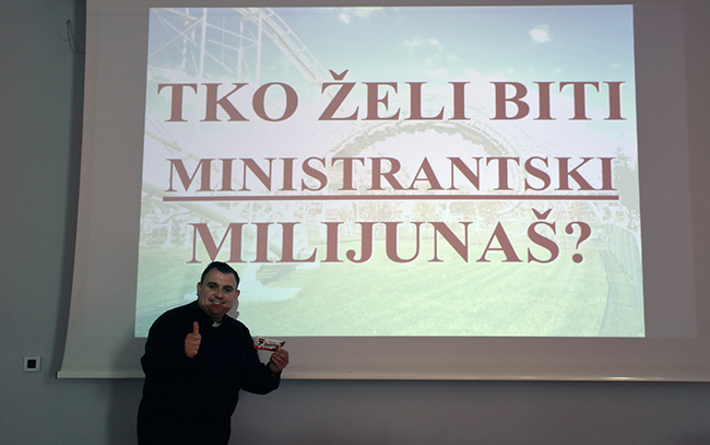 Na kraju kateheze svatko je dobio radni list sa slikama hrvatskih blaženika i svetaca kako bi ih bolje upoznali, a svi ministranti morali su odgovoriti na pitanje: „Kakav bi bio njihov idealni svećenik?“ te je svatko od njih pokušao sastaviti molitvu za svoga župnika. Vjerojatno najbučniji dio čitavoga susreta bio je ministrantski kviz pod naslovom "Tko želi biti ministrantski milijunaš?", u kojem su okupljeni ministranti mogli pokazati svoje zavidno znanje iz vjeronauka te praktičnog poznavanja liturgijskih predmeta, ruha i posuđa, a uz to i poznavanja Svetoga pisma, crkvenog Katekizma i liturgijske godine.
