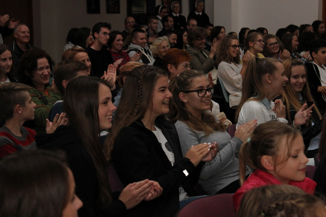 Nakon svete mise mladi su ostali u pobožnosti klanjanja pred Presvetim. Trenutci protkani mirom i zajedništvom mladima su se jako svidjeli, a za sjećanje na susret dobili su i blagoslovljene medaljice svetog Josipa. U nastavku večeri, mladi glumci Boris Sertić i Borna Marčac izveli su predstavu "Sarajevska audicija" pred prepunom Velikom dvoranom Nacionalnog svetišta i tako dobrim humorom oduševili sve prisutne.