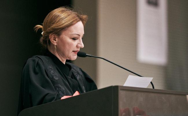 Okupljenim promoventima po završetku molitve obratila se prorektorica za nastavu izv. prof. dr. sc. Ines Sabotič te istaknula: „Budite s pravom ponosni na sebe, na svoj trud, zalaganje, upornost i uspjeh. Vaši mentori, profesori i cijela sveučilišna zajednica je bez dvojbi ponosna na vas zajedno s vašim prijateljima, obiteljima i naročito roditeljima. Biti magistar znači isto preuzeti neku odgovornost prema znanju koje ste dobili i prema zajednici kojoj pripadate: znanje koje dobivamo nikako se ne smije čuvati, treba ga dijeliti, pronositi kao što se pronosi Radosna vijest. Lijepo je otkrivati nove spoznaje, razvijati ideje, pisati, tumačiti, a još je ljepše tumačiti ih drugome. To čovjeka čini radosnim, oplemenjuje kako i njega samog, tako i druge oko njega.“