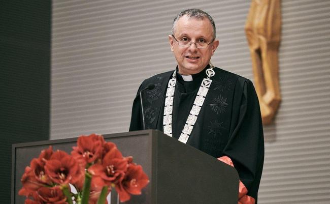 Sve prisutne u ime nadbiskupa zagrebačkog kardinala Josipa Bozanića pozdravio je pomoćni biskup Zagrebački mons. Ivan Šaško. „Došao sam podijeliti s vama ove radosne trenutke i donijeti vam čestitke našega zagrebačkog nadbiskupa i velikoga kancelara Sveučilišta, kardinala Josipa Bozanića, čija će prisutnost, povezanost i blizina ostati vidljivima i na vašim diplomama. Čestitam vama, dilectissimi magistrantes; čestitam Sveučilištu i posebno dobitnicama Rektorove nagrade i Rektorovih pohvalnica. Želim vam da budete veliki u svojoj struci tako da osjećate ljepotu malenosti, služenja bližnjima; da kao učitelji, znate istodobno i poučavati i učiti, obogaćivati druge, liječiti rane, prepoznavati u društvu pojave koje vode prema dobru ili prema zlu i založiti se za istinu. Siguran sam da ste u proteklih pet godina još snažnije vidjeli koliko je traženje i svjedočenje istine potrebno našoj domovini, baš kao i vi. Vi joj trebate, dragi mladi. To ne zaboravite, ma kamo vas Božji putovi poveli. Budite odraz imena ove ustanove u njezina tri naglaska: da je hrvatsko, da je katoličko i da je sveučilište.“