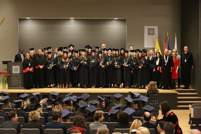 Svečana promocija prvostupnika započela je molitvom za studente i Sveučilište koju je predvodio vlč. Odilon Singbo, a tom prigodom pročitana je i Poslanica svetog Pavla apostola Filipljanima putem koje je istaknuta važnost zajedništva među ljudima: „Složni budite, istu ljubav njegujte, jednodušni, jedne misli budite; nikakvo suparništvo ni umišljenost, nego - u poniznosti jedni druge smatrajte višima od sebe. Ne starajte se samo svaki za svoje, nego i za ono što se tiče drugih“.
