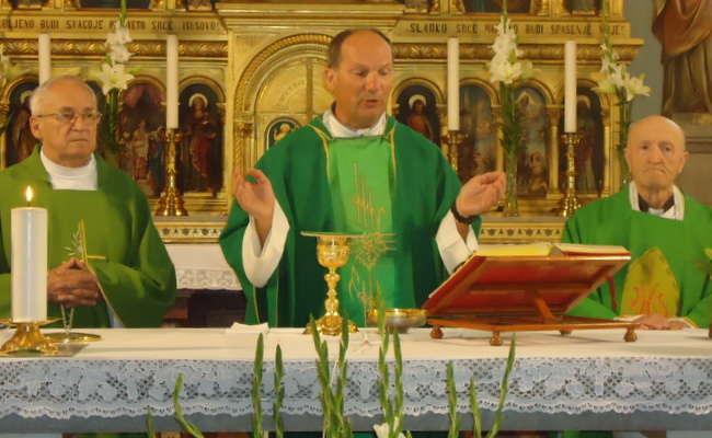 Zahvalu Bogu i čestitku jubilarcima u svojoj propovijedi uputio je mladomisnik Marko Torbar, koji je kao đakon proteklu pastoralnu godinu proveo u samoborskoj župi. Naglasio je da „naši svećenici: Valek, Josip i Davor zajedno slave 135 godina predanja i služenja Kristu!“ te predstavio svećenički životni put svakog od slavljenika.