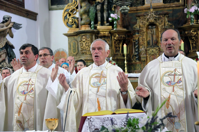 Nedjelju slavljeničku svetu misu predvodio je fra Bernard, a s njim su koncelebrirali provincijal franjevaca trećoredaca (tzv. glagoljaša) fra Ivo Martinović, samoborski župnik i dekan Samoborsko-okićkog dekanata preč. Davor Štuljan, franjevci iz Samobora fra Lucije Jagec i fra Ivan Matić, domaći župnik vlč. Darko Banfić, te šestorica franjevaca trećoredaca, u zajedništvu s vjernicima iz župe te brojnim gostima koji su doputovali sa svih strana Lijepe naše gdje je fra Bernard boravio.