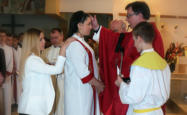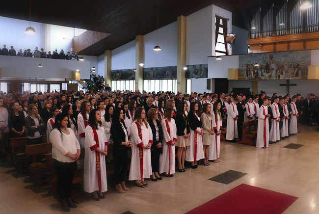 U svečanom ozračju, nadahnuti propovjednikovim riječima, krizmanici su sakrament svete potvrde primili u za njih posebno sašivenim bijelo-crvenim haljinama. Na crvenom dijelu nalazi se u zlatnoj boji izvezeni logo Nacionalnog svetišta svetog Josipa i glagoljičnim pismom ispisana riječ "krizma".