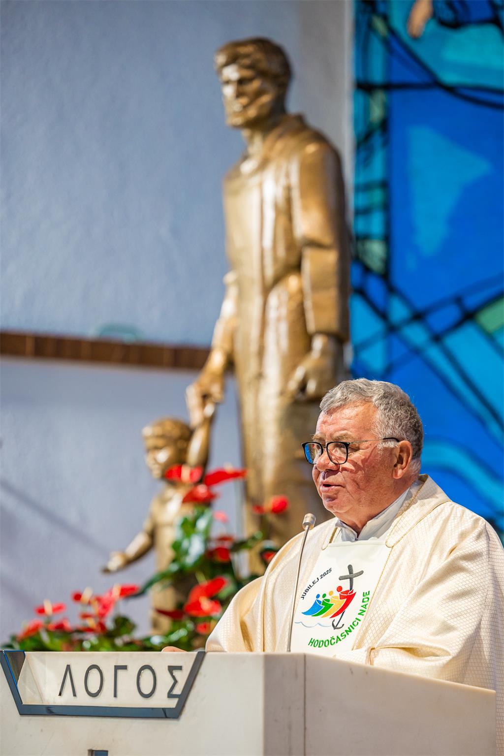 "Nedavno sam u vrlom hrvatskom tisku, koji meni ni po čemu nije hrvatski, pročitao kako je čudno da jedan od naših najboljih pjevača, sada u ozbiljnim godinama, govori o vjeri kao nečemu posebno vrijednom. Pa se novinar čudi što se to događa ljudima u starijim godinama. Starije ljude uglavnom resi veća mudrost života. Ne obaziru se toliko na trivijalnosti života, nego na život sam - na ono što je bitno u životu, a ne na svakodnevne gluposti. Briga za bolesnike vraća nas onome što ostaje trajno, što nam posvješćuje o onom odakle smo, što smo i kamo idemo. Zašto zapravo živimo? A to nije stvar pohlepe, nije stvar lakomislenosti i besmislene trke za prolaznim vrijednostima. A ozbiljan čovjek u godinama više ni nema vremena gubiti ga tako da trči za glupostima. Evo, koliko predivnih prilika da svećenik donoseći Radosnu vijest drugima i sam napreduje u svakom pogledu. Svećenički poziv je jako svestran, zahtjevan, ali i odgovoran. To nije posao koji sam obavio i gotovo. S time se živi, pa i spava, ali i sanja. Svećenik je pozvan da bude propovjednik, govornik, umjetnik, graditelj, psiholog, liječnik, tješitelj, sudac, mirotvorac, pomiritelj, projektant, pisac, urednik, pjevač, zabavljač, zemljoradnik, osobito vinogradar. Zato, dragi mladi, nemojte dvoumiti prihvatiti taj poziv ako bilo kako osjetite da Vas Gospodin zove. U tom zvanju mladi čovjek ima najviše prilika da se kao čovjek ostvari u svemu što je dobro, što je najizvrsnije. Jer nema ničeg boljeg nego ostvariti u svom životu ljubav - kako prema Bogu, tako i prema ljudima s kojima živimo, prema ljudima Hrvatima i svima koji žive u ovoj našoj lijepoj domovini. Jer ljubav je u tome da u konkretnim, osobito veoma zahtjevnim situacijama, činimo dobro bližnjima uz mnoge žrtve, ali to je put nasljedovanja Isusa Krista."