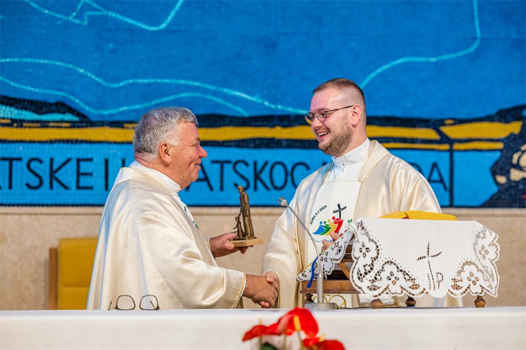 Vlč. Banu je na kraju misnog slavlja lik sv. Josipa uručio mladomisnik Ivan Iviček koji od jeseni vrši službu župnog vikara u Josipovu svetištu u Karlovcu.
