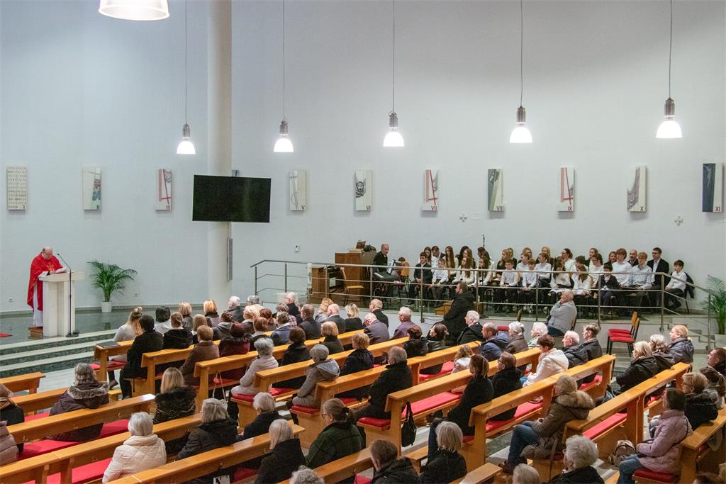 Na početku euharistijskog slavlja mons. Josip Oslić prisjetio se samih početaka osnutke Župe, istaknuvši kako je u ono vrijeme bilo teško organizirati vjerski život u jednom stanu od šezdeset kvadrata u Ulici Viktora Kovačića. Bile su to prilike poput prve Crkve o kojima piše knjiga Djela apostolskih, vrijeme u kojemu je vladalo „jedno srce i jedna duša“ (Dj 4, 32), ističe mons. Oslić.