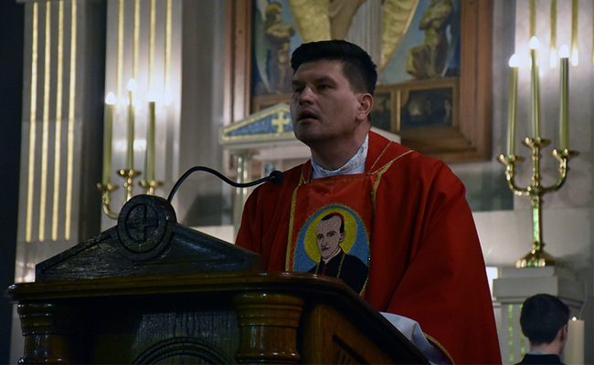 U svojoj homiliji preč. Matošević osvrnuo se na evanđeoski tekst iz Ivanova evanđelja (usp. Iv 12, 20-26) u kojem se posebno dotaknuo rečenice koju Grci upućuju apostolu Filipu: „Želimo vidjeti Isusa!“ te je naglasio: I mi bismo željeli vidjeti Isusa, upoznati ga, zavoljeti ga. Upravo zato postoji Crkva, zato postoji i sjemenište – da vidimo Isusa, ali vidjeti ga uz pomoć drugih. Na tom putu pomažu nam sveci. Oni su, kao i Isus, zrno koje umire da bi dalo ploda. Bog nam se daruje da bi mi imali život.“ Navodeći primjer darivanja blaženoga Alojzija i povlačeći paralelu sa navještenim evanđeljem, propovjednik je okupljene pozvao da nasljeduju Blaženikov primjer i u svom životu.