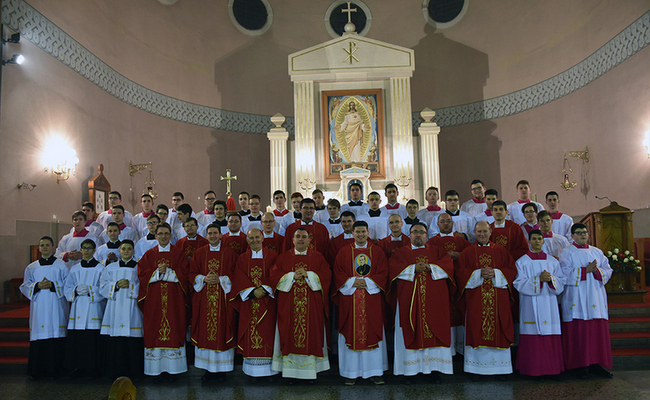 Okupljenim svećenicima, sjemeništarcima i vjernicima na početku euharistijskog slavlja obratio se domaćin susreta, preč. Matija Pavlaković, aktualni rektor Sjemeništa. Izrazio je radost što su i treći puta po redu negdašnji i sadašnji odgojitelji zajedno, što ih ne gledamo samo na maturalnim fotografijama po zidovima sjemeništa već okupljene oko oltara u molitvi i zahvalnosti za dar svećeničkog služenja Crkvi u Hrvata.
