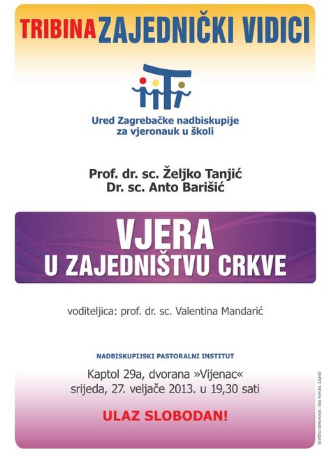 Druga u nizu Tribina „Zajednički vidici“ održat će se u srijedu, 27. veljače 2013., u prostorijama Nadbiskupijskoga pastoralnog instituta, Zagreb, Kaptol 29a, s početkom u 19.30 sati.