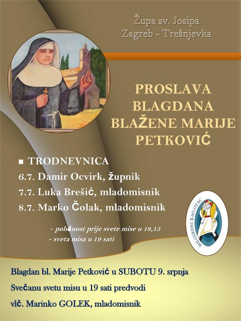 Trodnevnica i proslava blagdana bl. Marije Propetog Isusa Petković na zagrebačkoj Trešnjevci