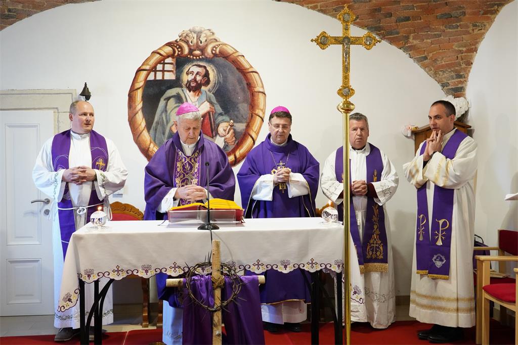 Nakon obreda ukopa u privremenom Bogoslužnom prostoru Župe sv. Bartola u Kamenici sprovodnu misu zadušnicu je predvodio biskup Josip Mrzljak, a homiliju je izrekao biskup Šaško.
