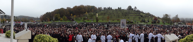 Nakon misnog slavlja hodočasnici su imali priliku iskazati štovanje relikvijama sv. Ivana Pavla II. i sv. Faustine, nakon čega je uslijedio križni put bistričkom kalvarijom temeljen na ulomcima iz Dnevnika sv. Faustine. U 15 sati procesija se s Kalvarije uputila prema bazilici i svečano ušla kroz Vrata milosrđa. Izmoljena je krunica u čast Božjega milosrđa, litanije u čast sv. Ivana Pavla II., dok je o. Andrzej Wośko učinio i čin posvete svijeta i Domovine Božjemu milosrđu te pozvao sve prisutne da po povratku svojim domovima budu iskre koje će paliti srca bližnjih ljubavlju za Krista, za neizmjerno Božje milosrđe. (jv)